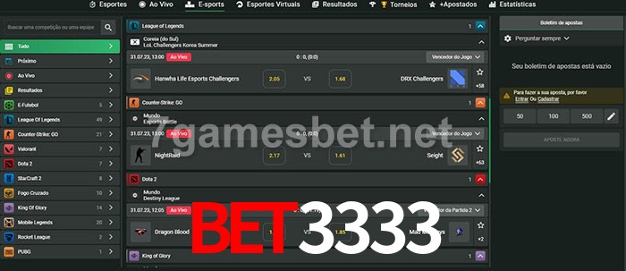 A aposta bet3333 oferece aos jogadores a experiência mais conveniente de apostas em eSports!